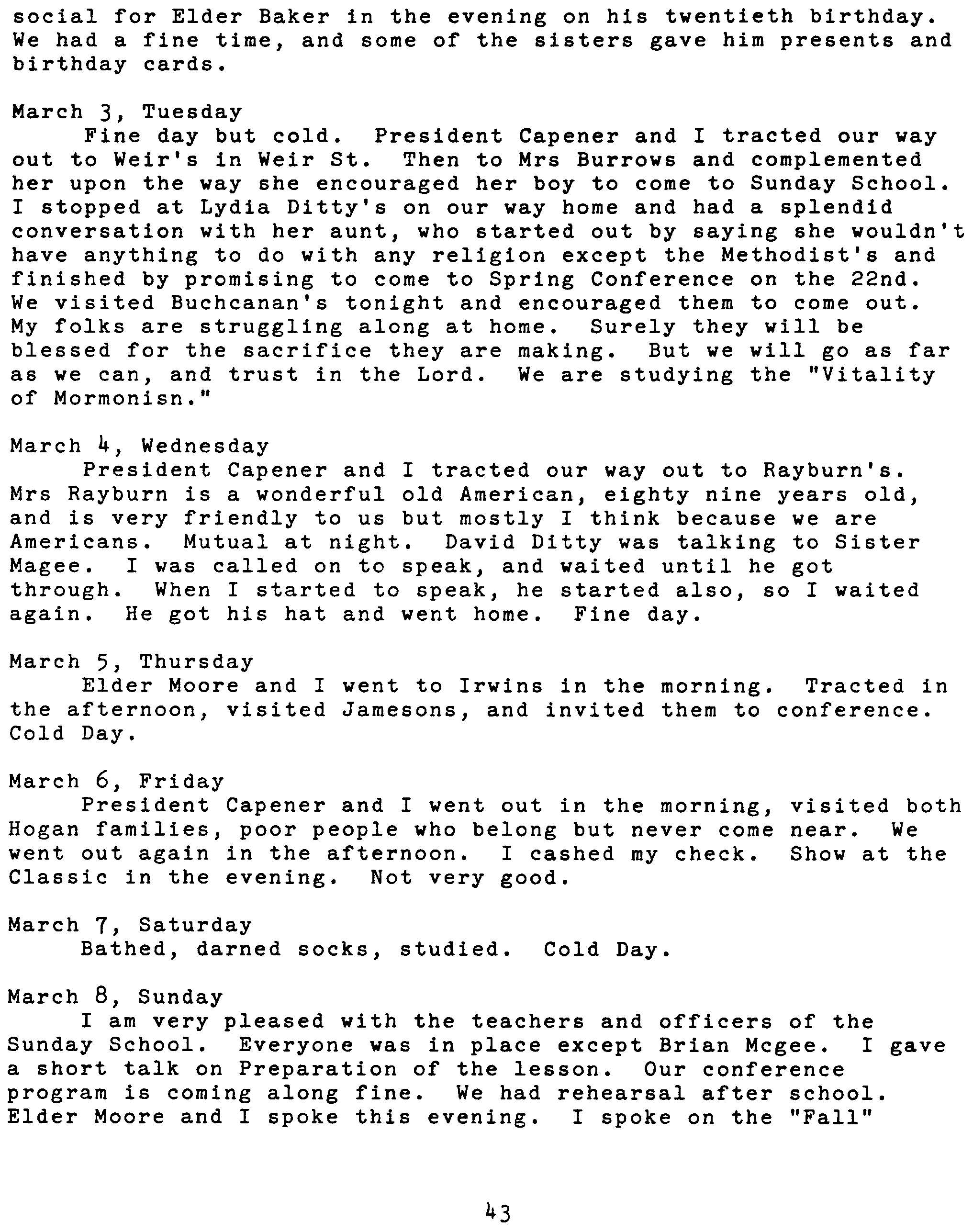 March 1925 Lydia Ditty My folks are struggling... Surely they will be blessed... David Ditty Brian Mcgee